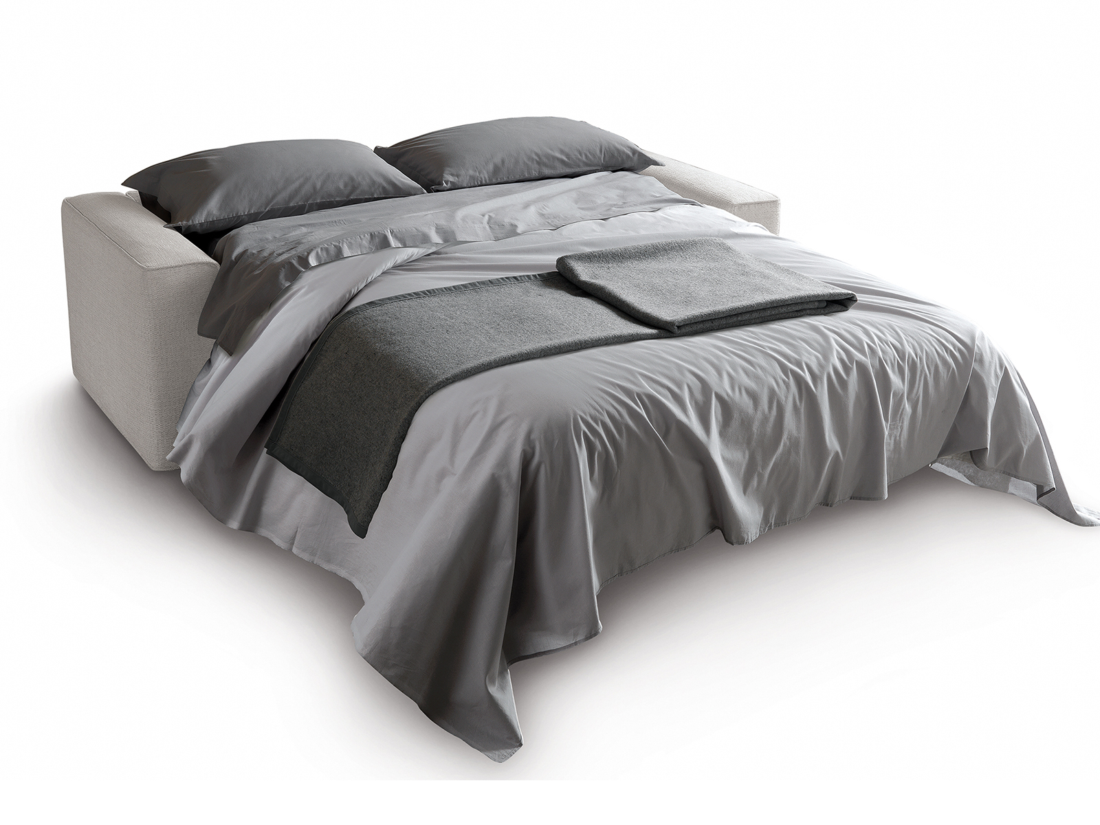 De bedbank Genua prestige is één van de paradepaardjes op het gebied van bedbanken. De bedbank is uitgevoerd met een zeer luxe 17 cm. dikke boxspring memory matras. De zit- en rugkussens van deze prestige bedbank zijn gevuld met memoryfoam waardoor de bank, buiten het fantastische ligcomfort, ook een zeer prettige zit heeft. Door het ROYAL-mechaniek is deze bedbank uitermate geschikt voor dagelijks gebruik. U draait heel eenvoudig het matras tevoorschijn zonder eerst te hoeven slepen met kussens. Het zitgedeelte heeft niets te maken met het bed waardoor de bedbank duurzaam en hygiënisch in het gebruik is. Ook biedt dit systeem u veel gebruiksgemak, omdat u het hoeslaken en molton om het matras heen kunt laten zitten tijdens het in- en uitklappen. Uw hoofdkussens kunnen worden opgeborgen in de daarvoor bestemde plekken achter de rugkussens. Deze opbergruimte komt tevoorschijn tijdens het uitklappen van het bed. Dekbed zult u elders moeten opbergen. Deze fabrikant onderscheidt zich ook door het gehele mechaniek van de bedbank standaard te bekleden in dezelfde stof als u kiest voor de bank. Als het bed uitgeklapt is ziet u dus niet het gebruikelijke metaal van het mechaniek zitten, maar is dit zeer mooi bekleed en afgewerkt met stof. Dit zorgt voor een luxe uitstraling, maar geeft u ook meer bed gevoel. Daarnaast is ook het matras om het mechaniek heen gemaakt waardoor u ook bij het voeteneinde geen koud mechaniek zult voelen, zoals standaard bij de andere bedbanken. En of het niet genoeg is: de bedbank Genua prestige heeft standaard een volledig afneembare bekleding. Zelf een keer deze luxe ervaren? Probeer de bedbank Genua prestige uit in onze showroom en ervaar zelf de onderscheidende kwaliteit.