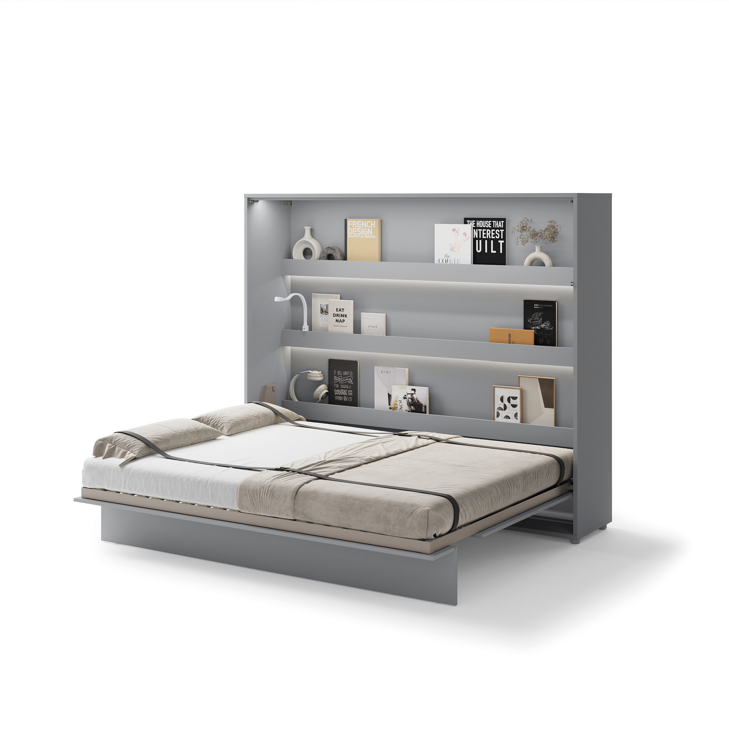 The Bed Concept bedside cabinet is very simple and pleasant to use. The bed opens smoothly and in a controlled manner thanks to a sturdy and reliable mechanism with gas springs, requiring little force.