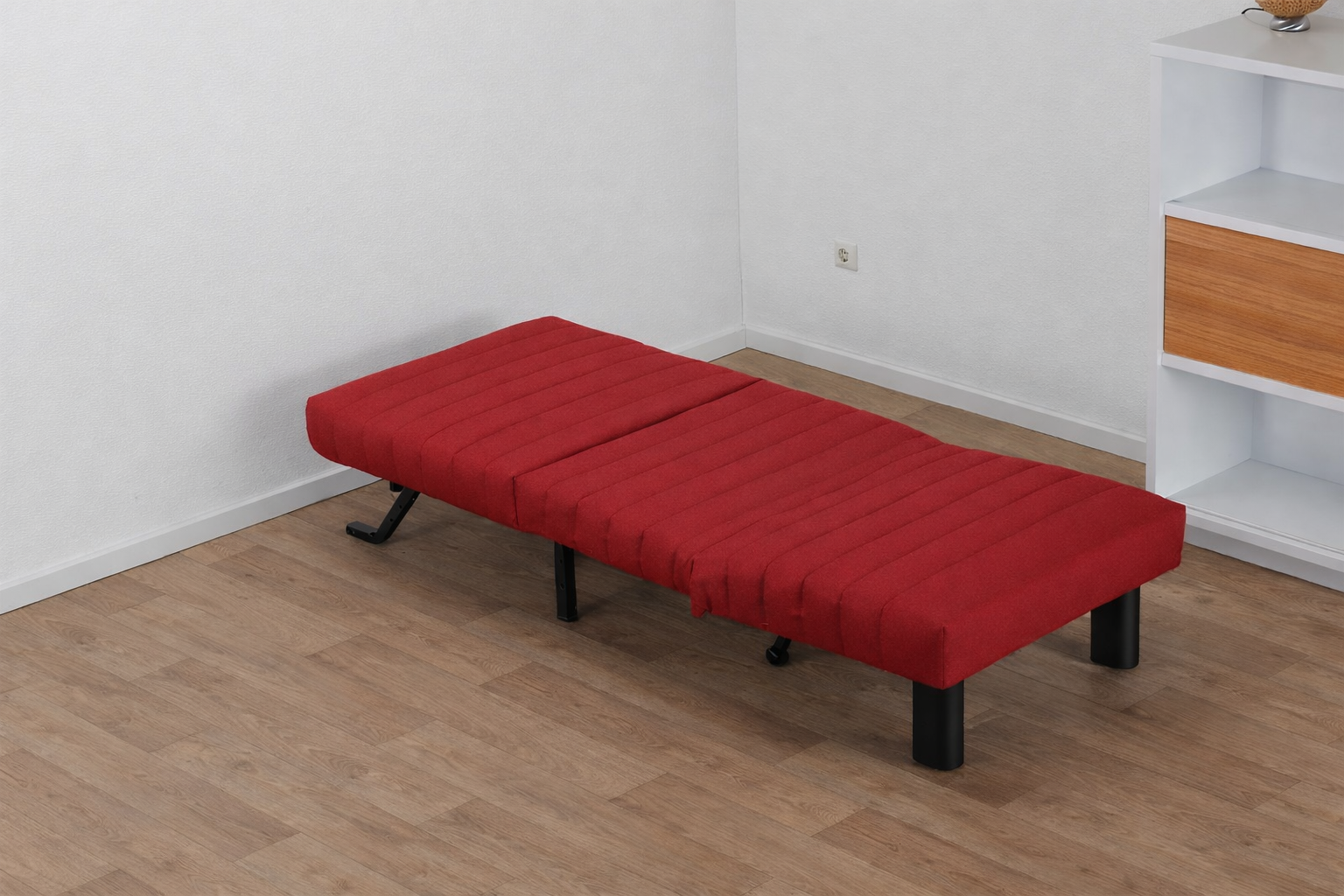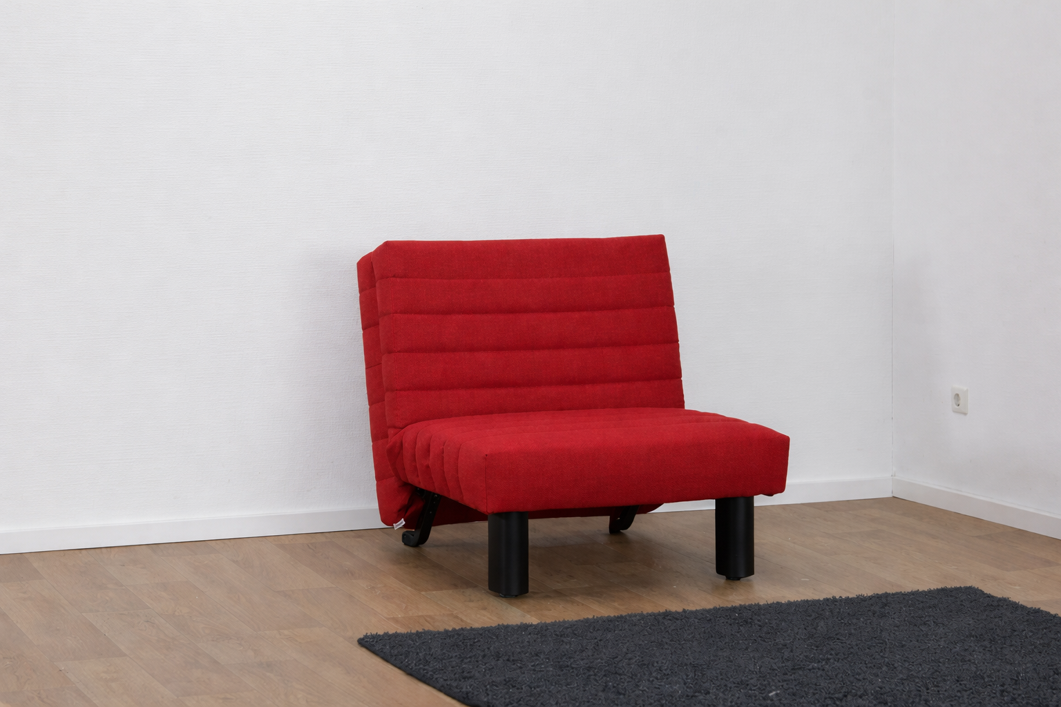 Bestel de slaapfauteuil Alexa met een luxe gelformmatras in een rode stof voordelig en snel in onze webshop.