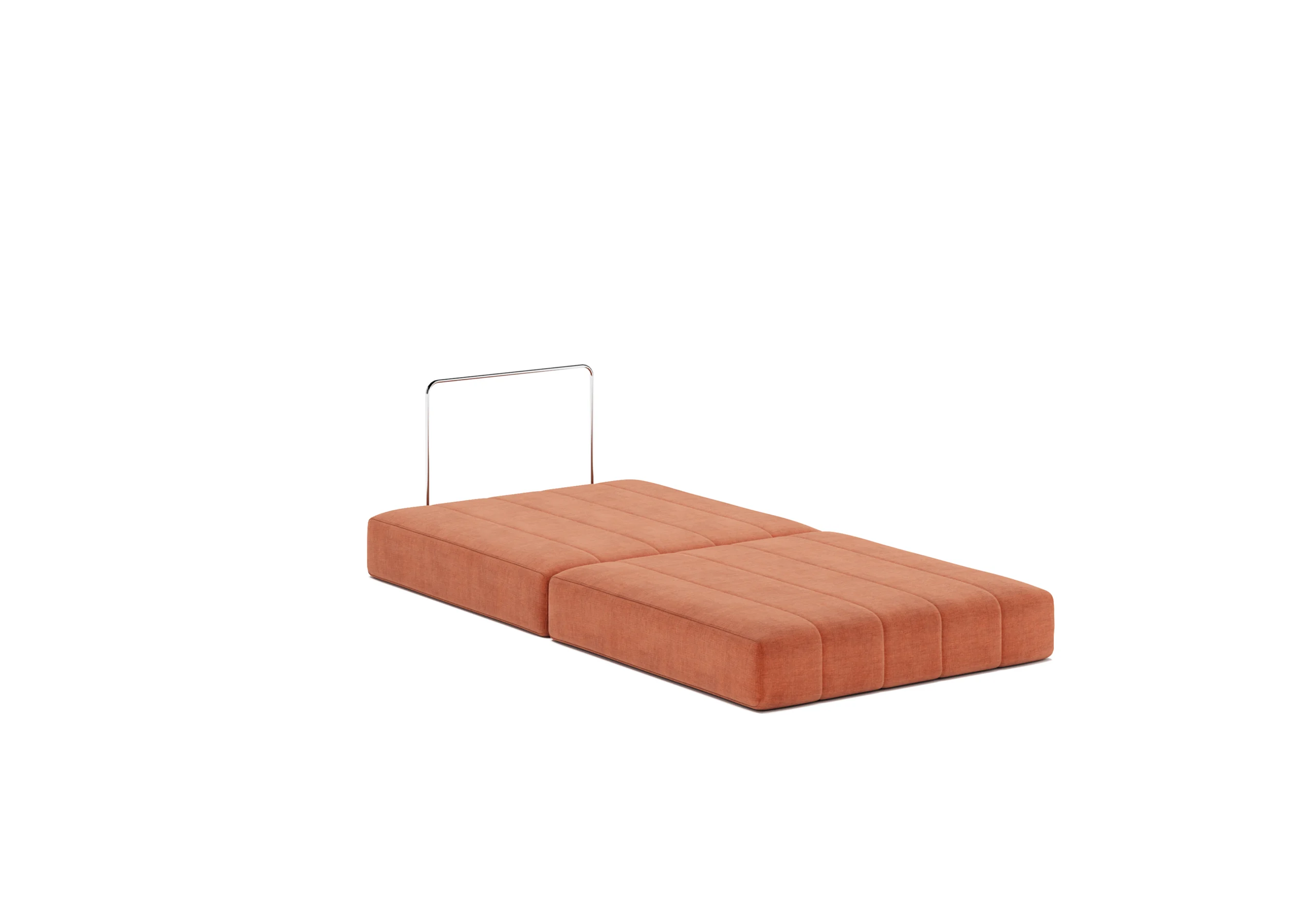 Sleeping chair Cozypad chair is a modular seating and lounge furniture that makes the Cozypad system can expand. The base consists of two HR30 foam mattresses of 100 x 100 cm that lie loose on top of each other. This creates a comfortable armchair, lounge area or extra seat that you position freely in the room. The Cozypad chair has the same subtle retro look as the Cozypad bench which refers to the seating landscapes of the 1970s. Everything is movable and flexible. Cozypad chair is primarily designed to complement the Cozypad sofa. Together, new arrangements are created, such as a corner arrangement, chaise longue or extension of the seating and lying surface. In this way, the system grows with your space and way of living. Used separately, the chair can also function as a compact lounge area or playful armchair. The two mattress sections can be laid side by side on the floor to form a 100 x 200 cm bed, with a seam in the middle, of course. This makes the Cozypad chair suitable as an occasional sleeping solution.