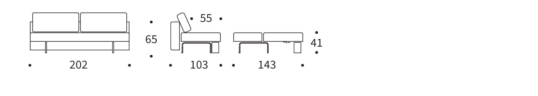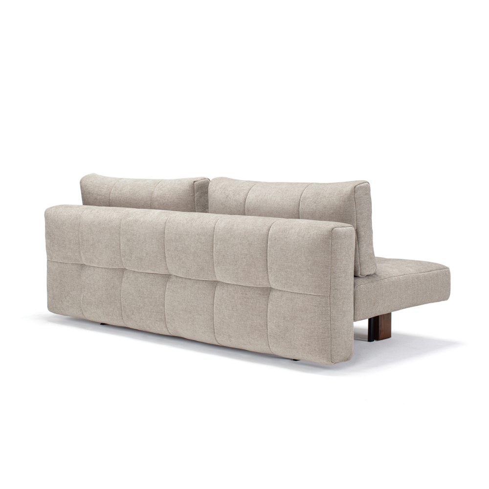 The Eiis effortlessly transforms from a beautifully upholstered sofa bed to a single 80×203 cm bed. The folding mechanism is simple: lift the seat up and forward. Turn the back section down and the double bed is there.