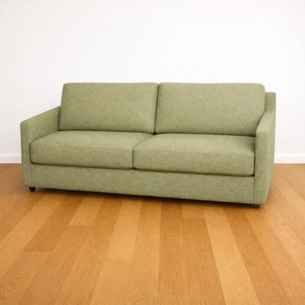 De slaapbank Victory combineert eigentijds design met hoog zit- en slaapcomfort. Deze uitvoering in de groene stof Elba Thyme wordt aangeboden tegen een aantrekkelijke actieprijs. Dankzij het doordachte ontwerp ervaart u overdag een comfortabele bank en ’s nachts een volwaardig bed. Het hoogwaardige pocketveringmatras van 17 cm dik ligt op een stevig metalen raster en biedt uitstekende ondersteuning en duurzaamheid, ook bij dagelijks gebruik. Het ROYAL-mechaniek maakt het ombouwen van bank naar bed eenvoudig en soepel. Het hoeslaken kan tijdens het inklappen op het bed blijven liggen, wat extra gebruiksgemak biedt. Dekbed en hoofdkussens worden apart opgeborgen. De slaapbank Victory is een praktische en stijlvolle oplossing voor wie geen concessies wil doen aan comfort of uitstraling. De slaapbank Victory is uiteraard ook te bekijken en te testen in onze showroom. U bent van harte welkom. Wenst u een andere stof? Dan kunt u in onze showroom kiezen uit een zeer ruime collectie stofstalen. Houd er rekening mee dat de aankoopprijs in dat geval zal wijzigen. Liever een kleiner bed? Kies dan voor de slaapbank Victory met een bedmaat van 140 voor € 2.295,-