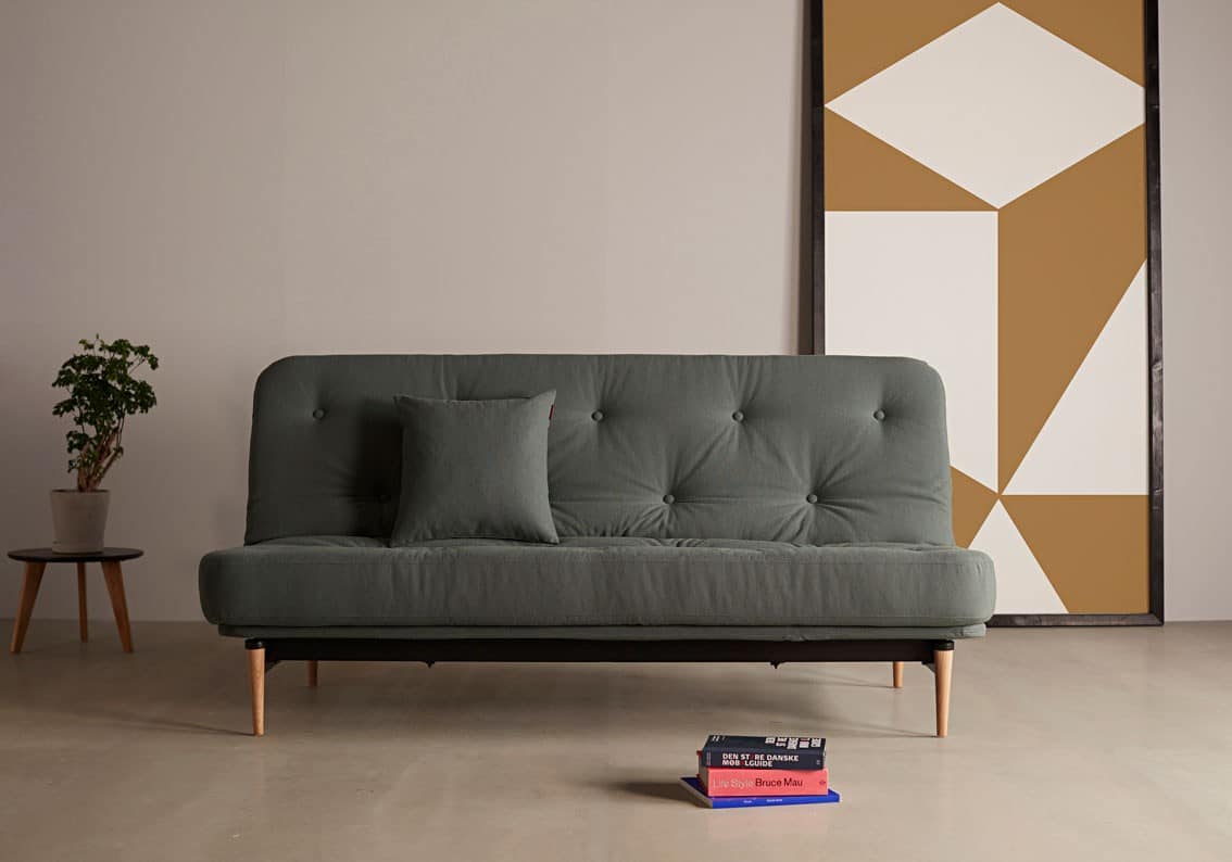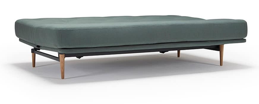 When two persons from the sofa bed use, you can fold it out over the long side. Because the sleeping direction is along the wall, the total unfolded size will be almost as wide as the bed width. This makes sofa beds with this mechanism very suitable for narrower rooms.