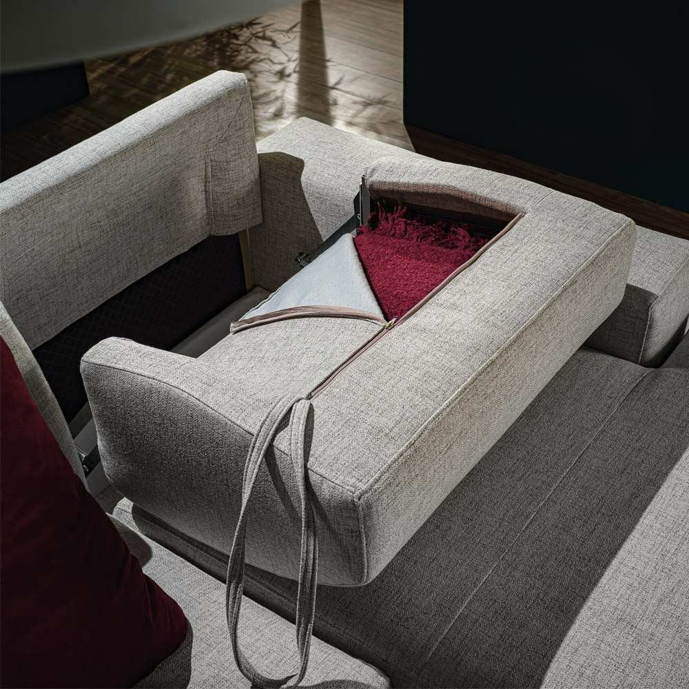 Veel zitcomfort voor u en uw gasten en de mogelijkheid heerlijk uit te liggen, met een kussen met rol op de verlengde armleuning voor comfortabel schuin zitten.
