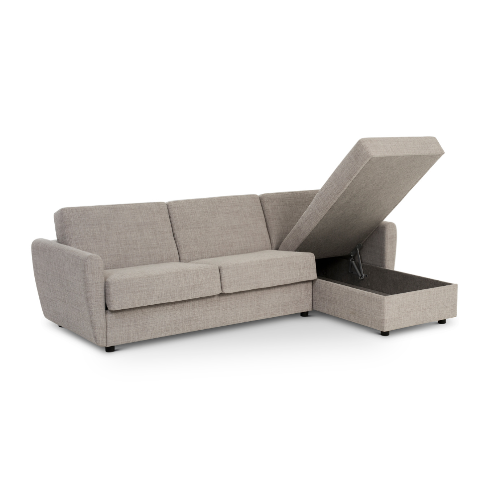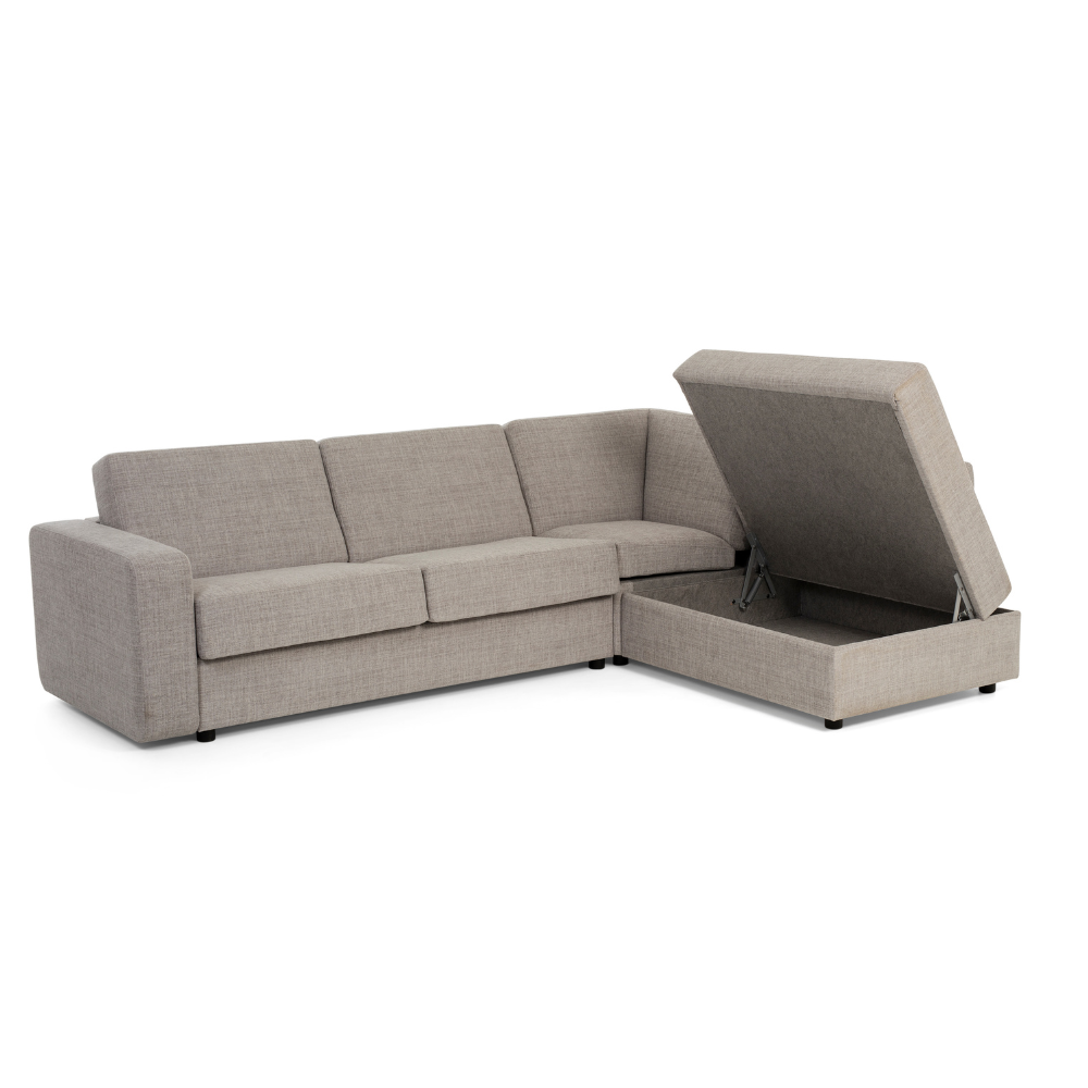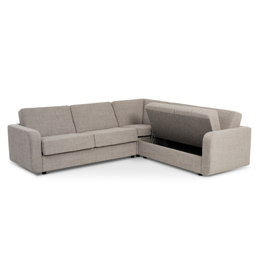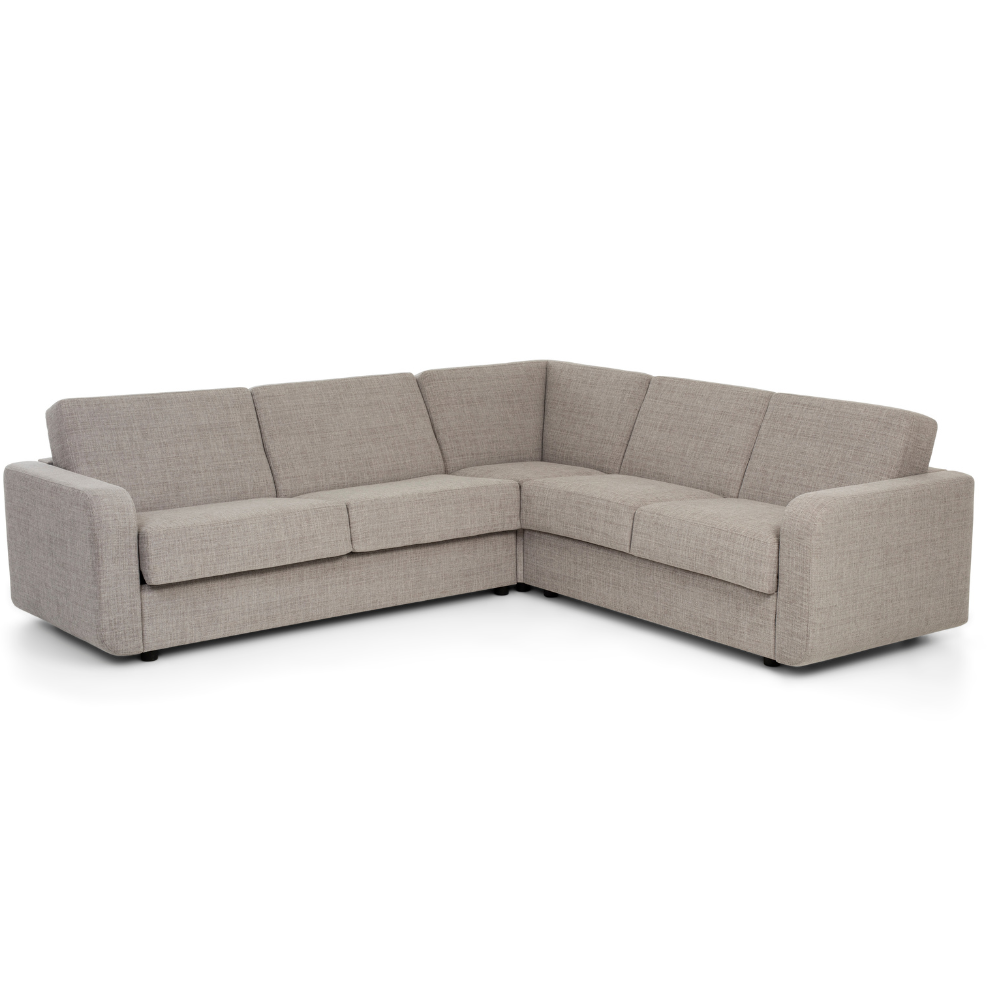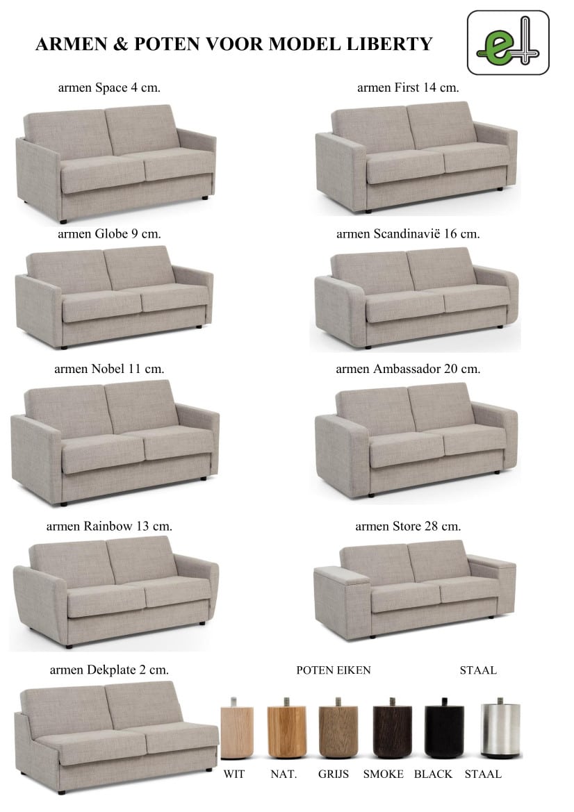 Hoekslaapbank Liberty combineert comfort met een strakke, moderne uitstraling. De zit is prettig en stabiel, waardoor de bank fijn is in het dagelijks gebruik. U heeft diverse mogelijkheden om de slaapbank een hoekopstelling te geven, denk aan een longchair, open hoek deel of een gehele hoekbank. Dankzij het Royal mechaniek klapt u de hoekbank eenvoudig uit tot een volwaardig bed. Hoekslaapbank Liberty is verkrijgbaar in meerdere bedmaten en biedt opvallend veel keuzemogelijkheden. U kiest uit maar liefst acht verschillende armleuningen, zodat de bank perfect aansluit bij uw interieur en ruimte. Standaard wordt de slaapbank geleverd met een degelijk pocketveringmatras van circa 13 tot 14 cm dik op een metalen raster, wat zorgt voor een comfortabele nachtrust. De hoekopstelling biedt extra zitruimte en is standaard uitgevoerd met een praktische opbergruimte. De poten zijn standaard uitgevoerd in kunststof en kunnen tegen meerprijs worden geleverd in hout of staal. Beschikbare houtkleuren zijn wit eiken, naturel, grijs eiken, smoke eiken en zwart. Daarnaast is er een ruime keuze aan stoffen. U kunt de hoekslaapbank Liberty ook kiezen als “gewone” bank zonder hoekdeel. In onze showroom kunt u de hoekvariant bekijken en uit proberen, wees welkom!