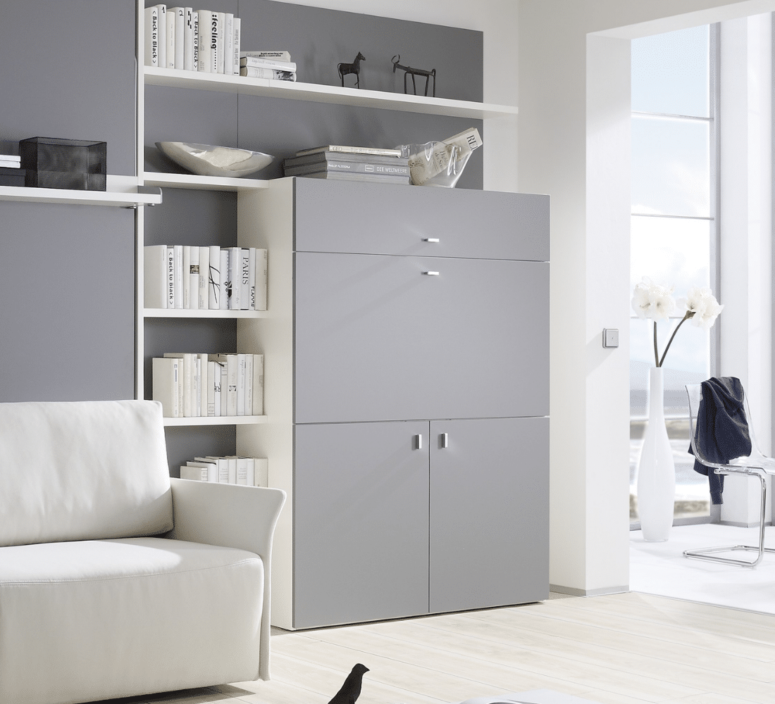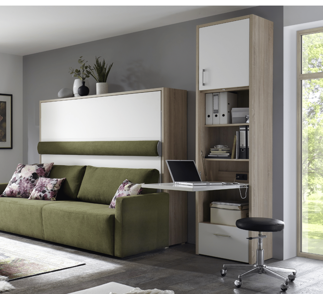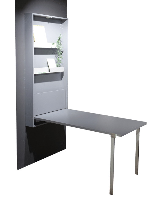 Onze inklapbare bureaus zijn handig als u niet veel ruimte heeft, maar toch ergens een fijne werkplek voor u zelf wilt creëren. Een plek waar u zich even af kunt zonderen om uw werk uit te voeren. De inklapbare bureaus die wij hebben zijn verwerkt in een kast. Dit is prettig voor als u na het thuiswerken niet tegen uw werkspullen aan wilt kijken. Een rommelig bureau is verleden tijd! Op deze manier creëert u ook rust in de kleinere ruimte. Het bureaublad is zeer gemakkelijk te openen en weer in te klappen. Van binnen geven de kasten de mogelijkheid om veel spullen in op te bergen. Tegen een meerprijs kunt u er ook een USB aansluiting en stekkerdoos in krijgen, zodat ook een stroom en oplaadpunt voor uw laptop en telefoon binnen handbereik is!