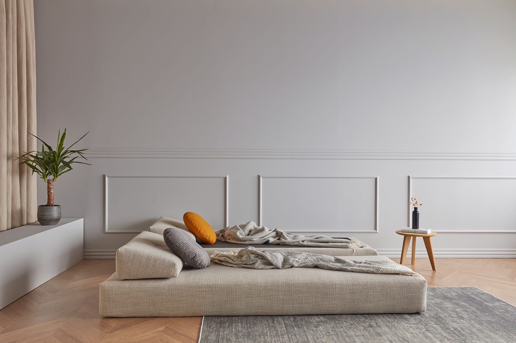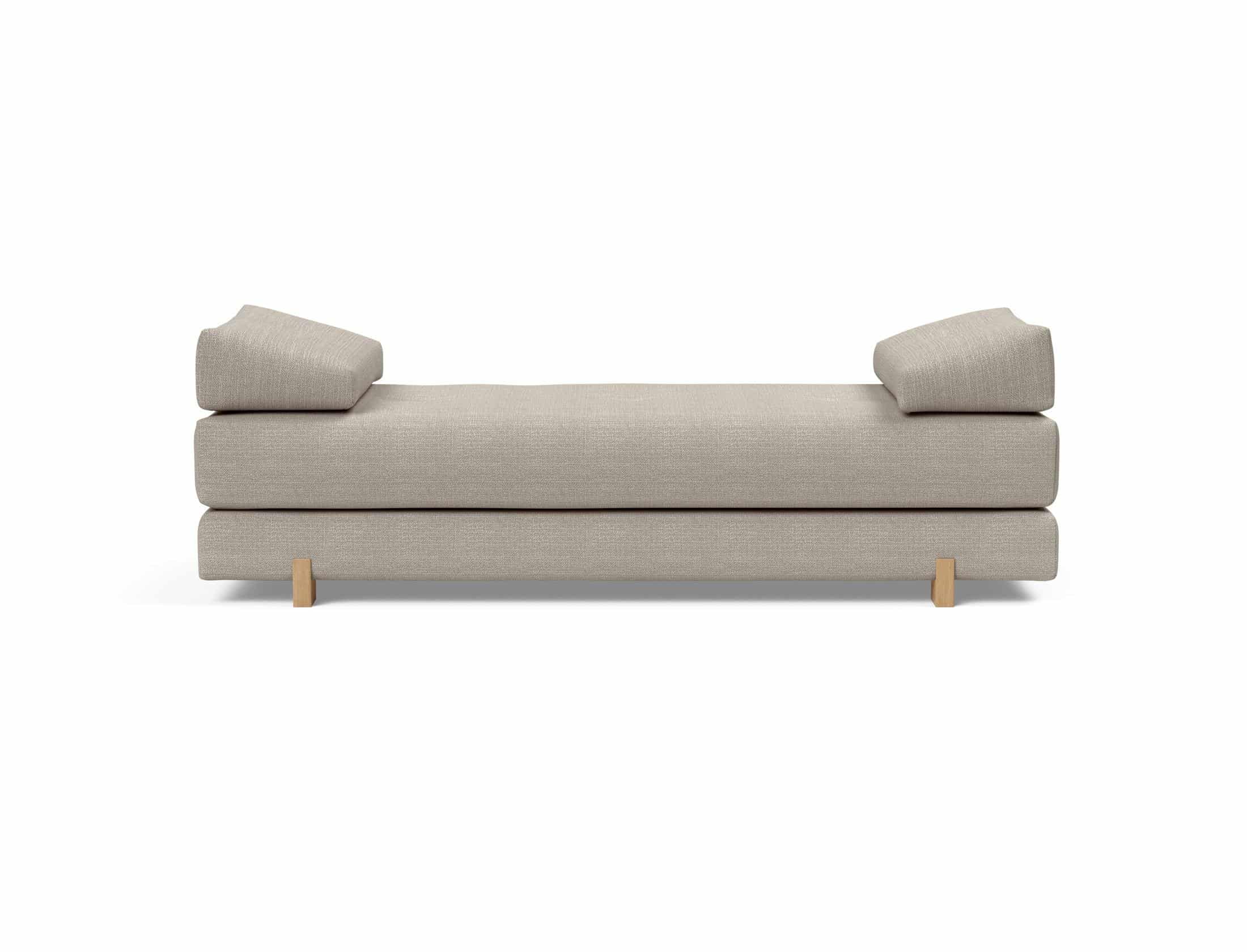 de Innovation slaapbank Sigmund Oak is de ultieme oplossing voor wie op zoek is naar functionaliteit in een kleine ruimte. Dit Deense designstuk combineert moeiteloos stijl en comfort, en biedt een slaapoplossing voor onverwachte gasten na een gezellig samenzijn.