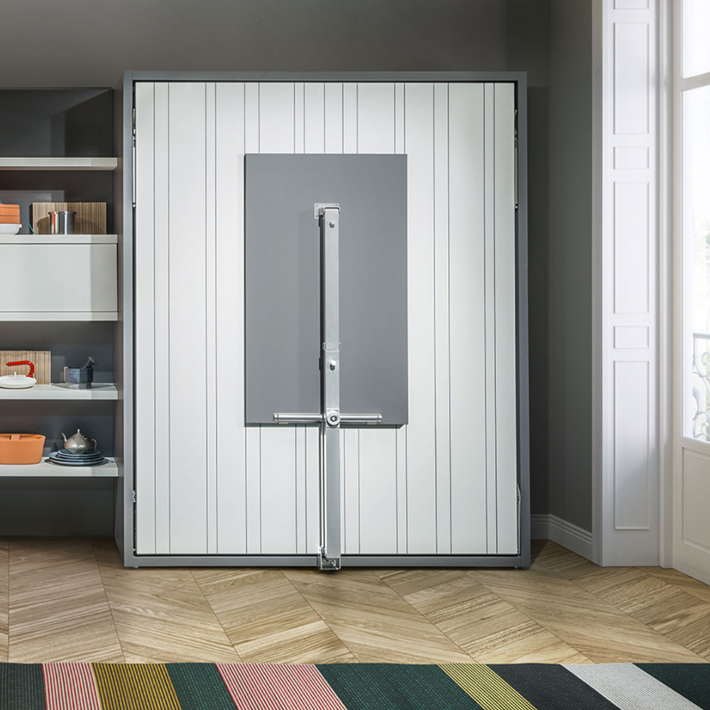 Net als de gewone Penelope is ook de Penelope Dining uitgevoerd met een sterk en betrouwbaar mechanisme. Verkrijgbaar in de bedmaten 150×200 en 160×200. Standaard heeft het opklapbed een diepte van 35 cm (exclusief tafel), waardoor hij weinig ruimte inneemt. Wilt u de kast integreren met naast staande hangkasten? Kies dan voor de uitvoering met 62,3 cm diepte, zodat alle elementen één mooi geheel vormen. In deze diepe uitvoering kunt u optionele opbergplanken toevoegen en achter het hoofdeinde is een handige kussenopbergruimte