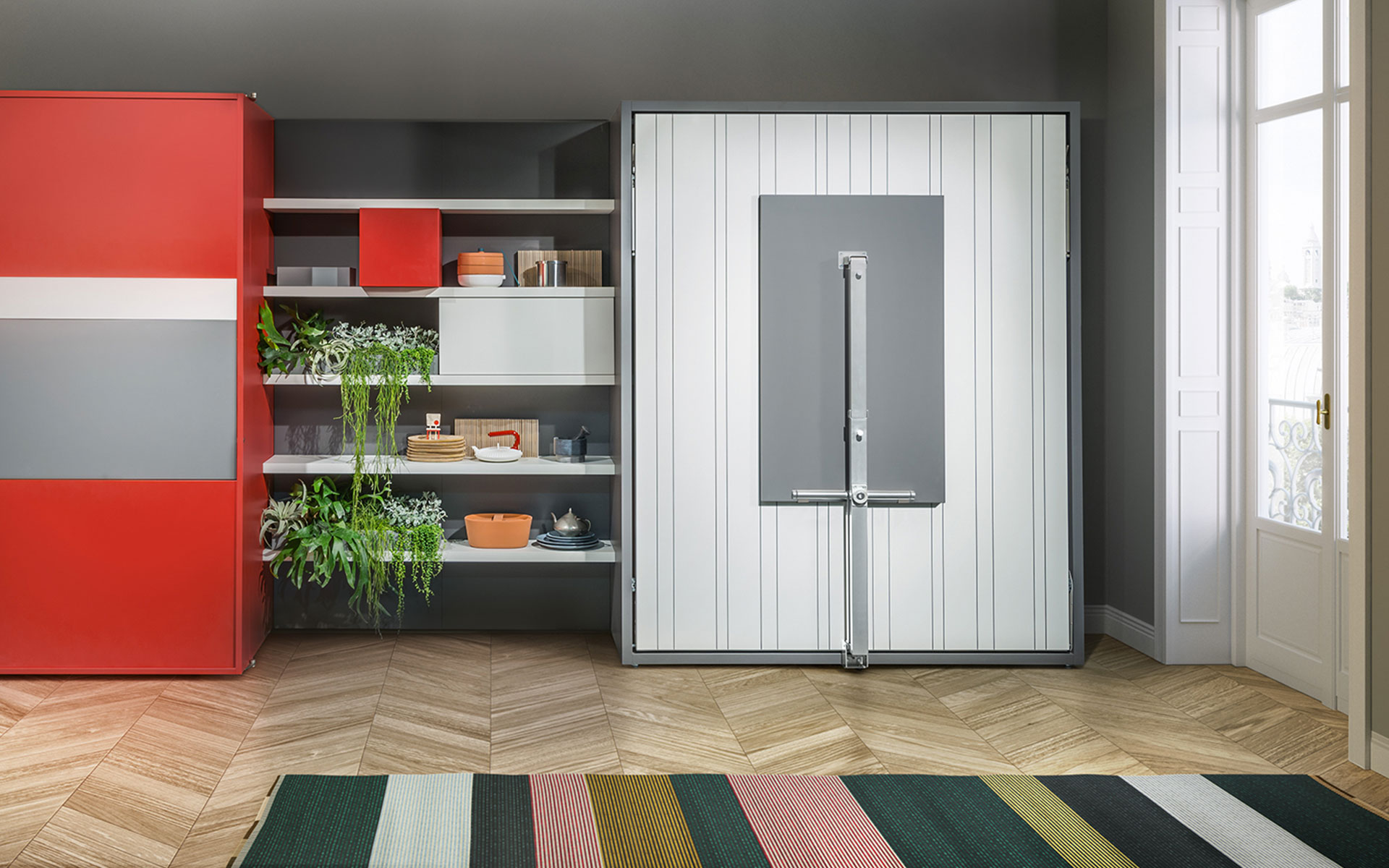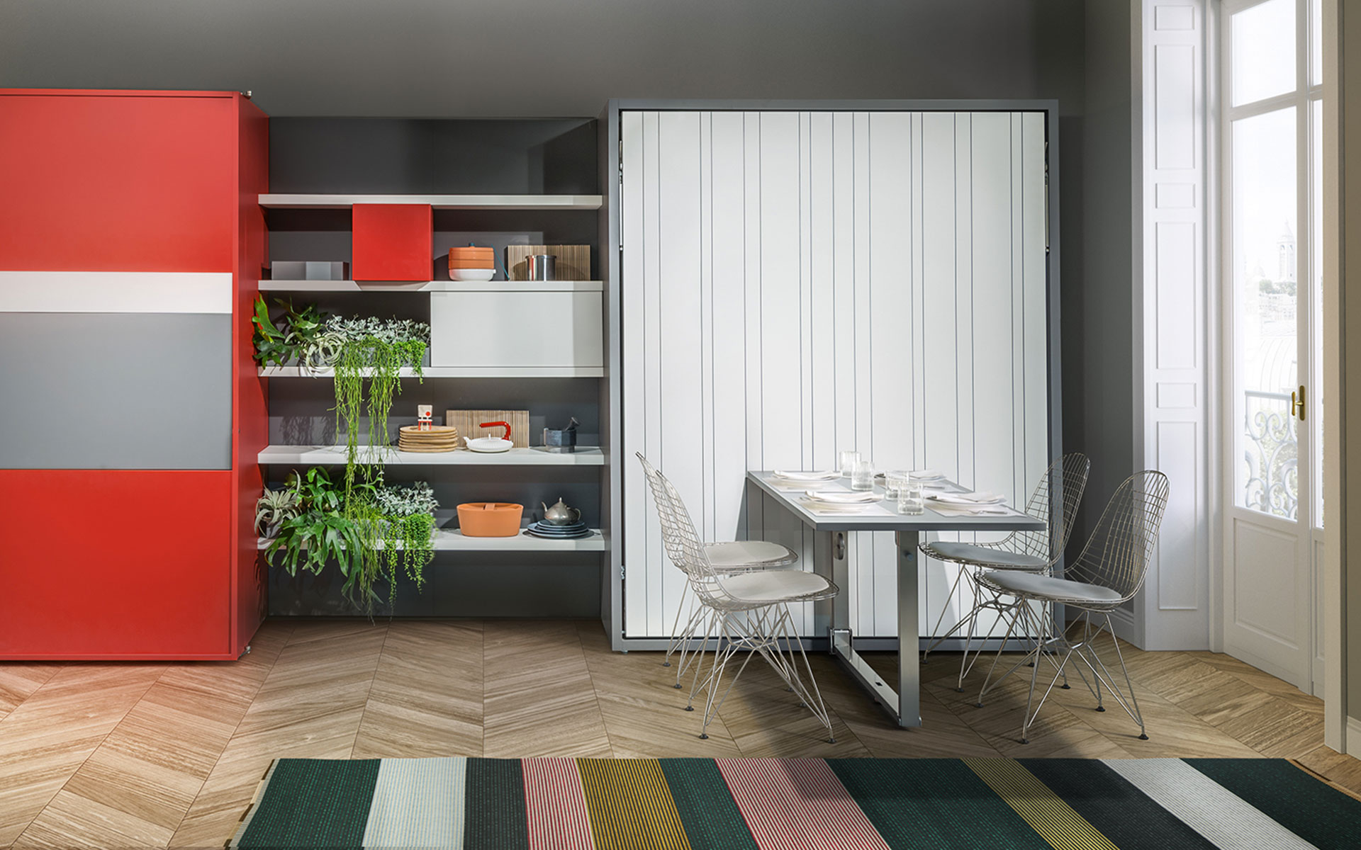 Creëer extra leefruimte en flexibiliteit in huis met een stijlvol ontwerp dat overdag een geïntegreerde eettafel biedt als praktische eet- en werkplek.