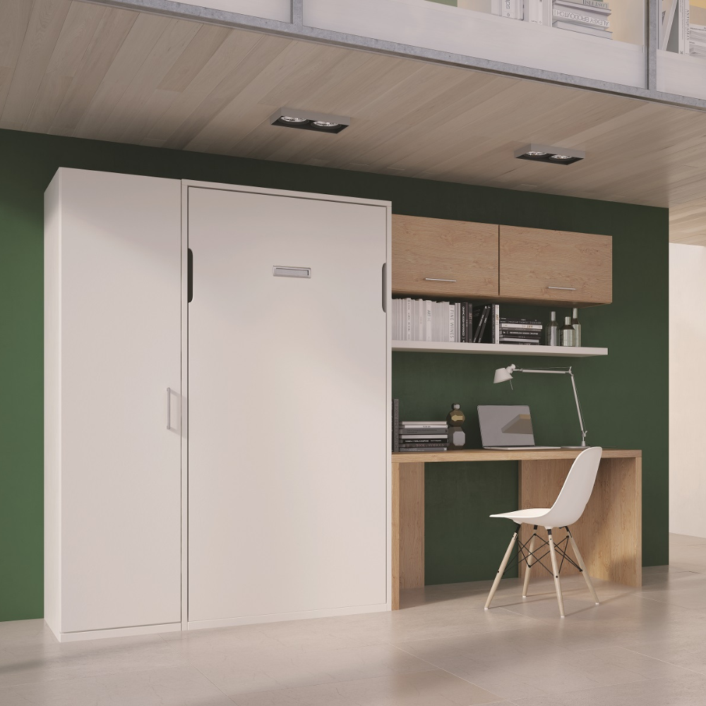 Het opklapbed Rapido is leverbaar in twee verschillende kastdieptes, namelijk 33 cm en 44,6 cm. De uitvoering van 33 cm diep is ideaal wanneer u zo compact mogelijk wilt wonen. De uitvoering met een diepte van 44,6 cm biedt extra comfort, omdat het hierbij mogelijk is om hoofdkussens in de kast op te bergen dankzij de aanwezige beugels en omdat deze uitvoering is voorzien van een handig plankje bij het hoofdeinde van het bed. Wat betreft uitstraling en afwerking is het opklapbed Rapido verkrijgbaar in diverse melamine kleuren en daarnaast ook in verschillende lakkleuren, zodat het opklapbedperfect kan worden afgestemd op uw interieur. De achterwand van het opklapbed is standaard wit, maar kan tegen een meerprijs in een andere uitvoering worden geleverd.