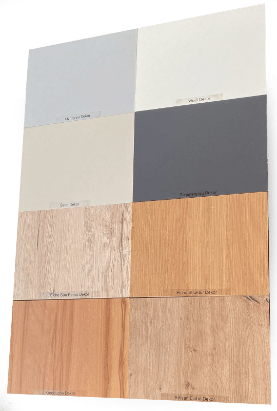 Eiken, Kernbeuken, Kernbeuken fineer, Lakkleuren, Leigrijs, Sonoma eiken, Wildeiken fineer, Wit