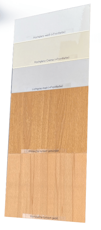 Dit programma heeft  deze uitvoeringen voor de romp en de fronten. De fronten kunnen, buiten de hiervoor aangegeven rompkleuren, in de volgende kleuren: hoogglans wit, hoogglans crème, lak lichtgrijs, kernbeuken fineer en wildeiken fineer.