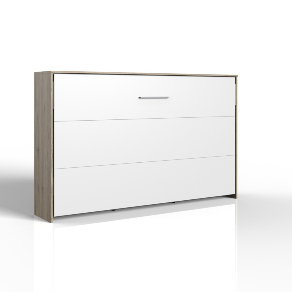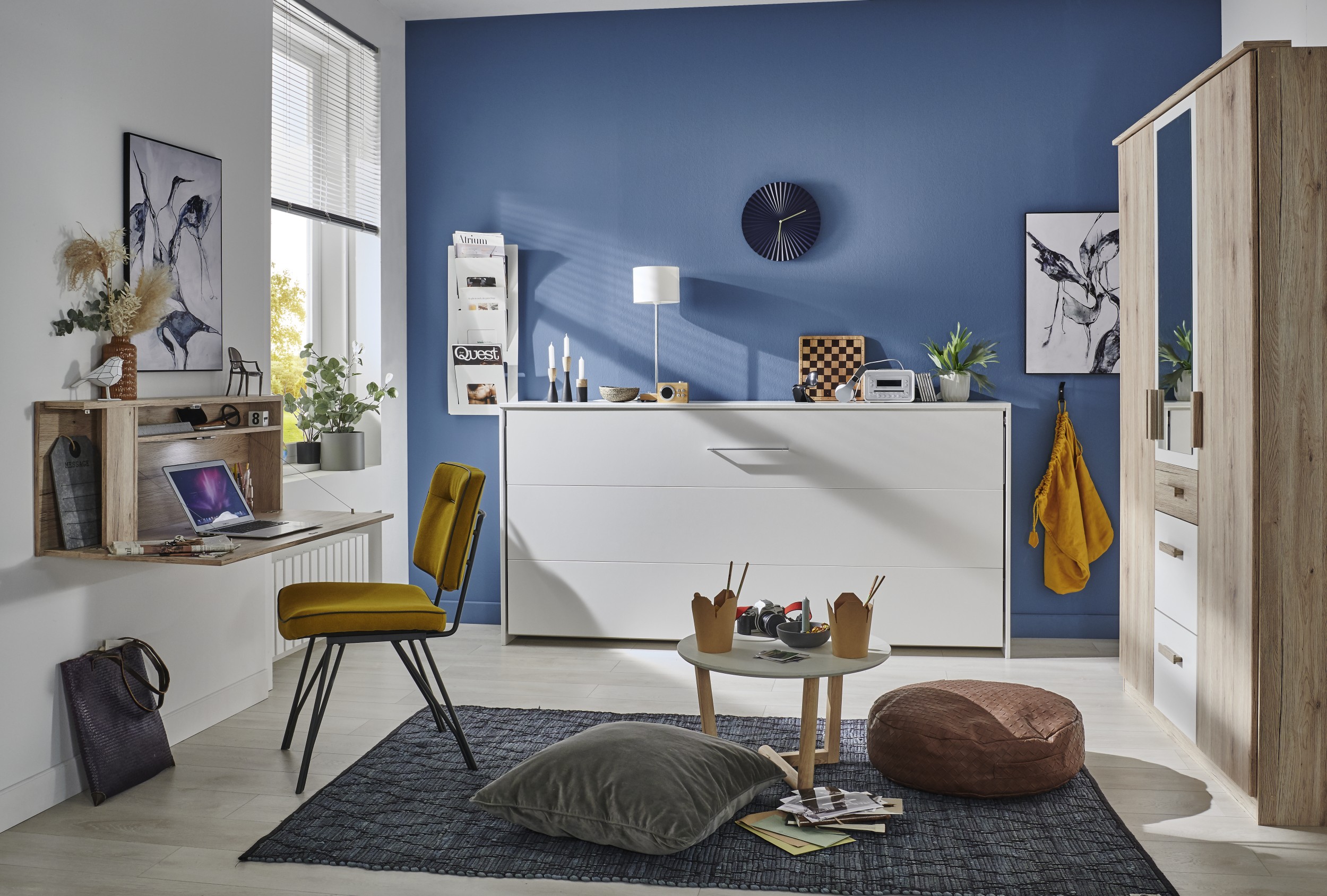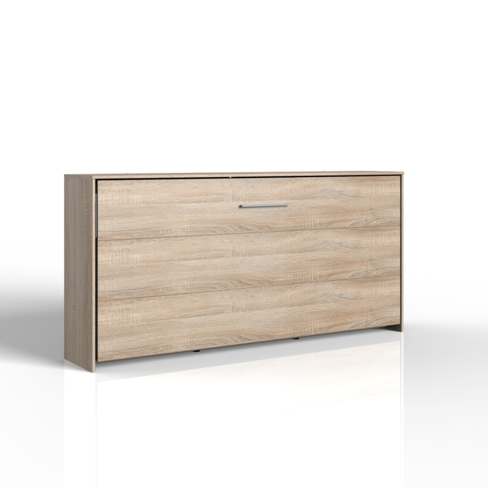 Ontdek het opklapbed Uno! Dit handige en voordelige opklapbed is perfect voor het creëren van extra slaapplek in kleine kamers, zoals kinder-, logeer- of werkkamers. Standaard uitgerust met een degelijke lattenbodem, biedt het opklapbed Uno een comfortabele slaapoplossing met een bed maat van 88×198 cm. U kunt uiteraard daarvoor gewoon het standaard beddengoed voor 90 x 200 gebruiken. Met een maximale matrashoogte van 18 cm kunt u zelfs uw dekbed opklappen! Het hoofdkussen moet elders worden opgeborgen. Kies uit 4 verschillende uitvoeringen voor dit opklapbed. Verkrijgbaar in wit, eiken, grijs en een combinatie van eiken met een wit front. Bij de grijze uitvoering is de achterwand altijd in het wit. Bij de volledig eiken variant is de achterwand ook in eiken kleur. Bij de witte en combi uitvoering is de achterwand in het wit. De prijs van het opklapbed Uno is zonder matras, maar inclusief levering en montage. Dat is onze zorgeloze service! Wilt u ook een matras bijgeleverd hebben? Dan kunt u dit gemakkelijk kiezen in deze bestelmodule. Dankzij zijn ruimtebesparende ontwerp is dit de ultieme oplossing voor elke kamer die behoefte heeft aan een slimme extra slaapplek. Het opklapbed Uno is alleen leverbaar vanuit de voorraad.