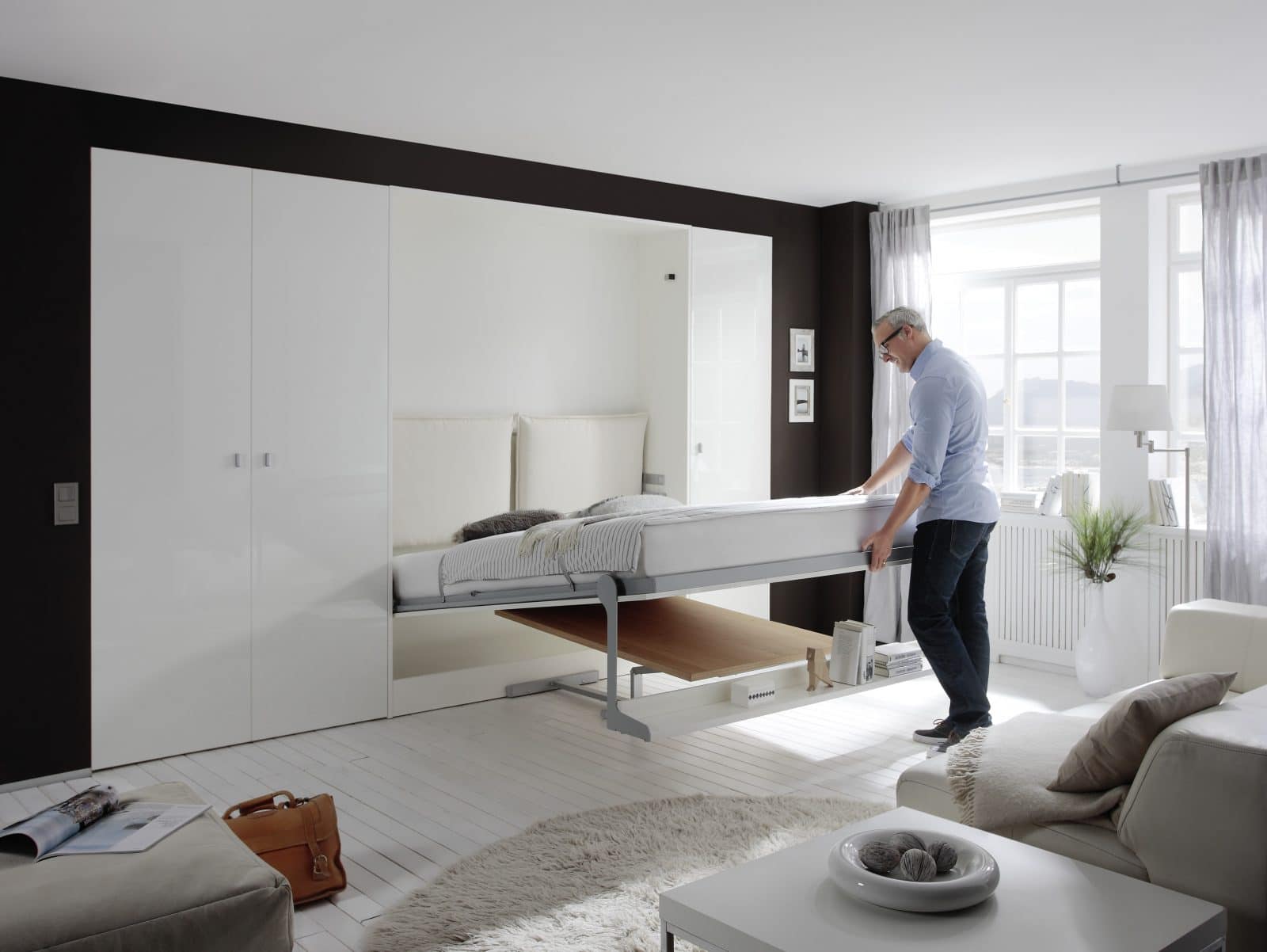 Een opklapbed is niet zwaar in gebruik. Het opklapbed kunt u zeer gemakkelijk in én uit klappen door de aanwezige gasveren. Op deze manier kost het u dus nauwelijks kracht! Bij de opklapbedden is het mogelijk om het beddengoed mee op te klappen. Dus geen gesleep met dekens! Het is hierbij wel belangrijk dat u bij de keuze van het matras rekening houdt met de dikte van het matras. Hierover kunnen onze adviseurs natuurlijk adviseren. Wij beschikken ook over een mooie collectie aan matrassen waar u eventueel uit kunt kiezen. Dankzij de bevestigingsbanden wordt het matras en beddengoed op zijn plek gehouden. Een opklapbed kan dagelijks gebruikt worden. U maakt als eerste de keuze voor het model die het beste past bij uw wensen en budget. Na de keuze van het passende model kiest u een kleur en uitvoering die past bij uw huidige interieur. Gelukkig heeft ieder programma een ruimte keuze dus kunt u iets gaan kiezen wat bij u past. Als alles is uitgekozen gaan wij het opklapbed voor u bestellen. Hij wordt namelijk specifiek voor u vervaardigt. Uiteraard moet u dan wel rekening houden met levertijd.