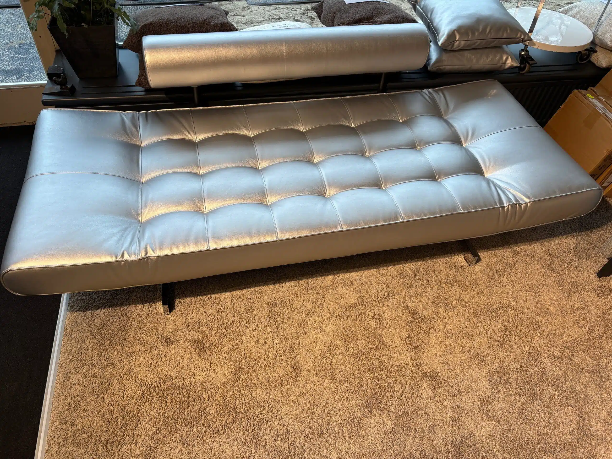 Mooi zilver is niet lelijk! Ontdek het daybed Ghia Chrome als echte eyecatcher met een zilveren stof.