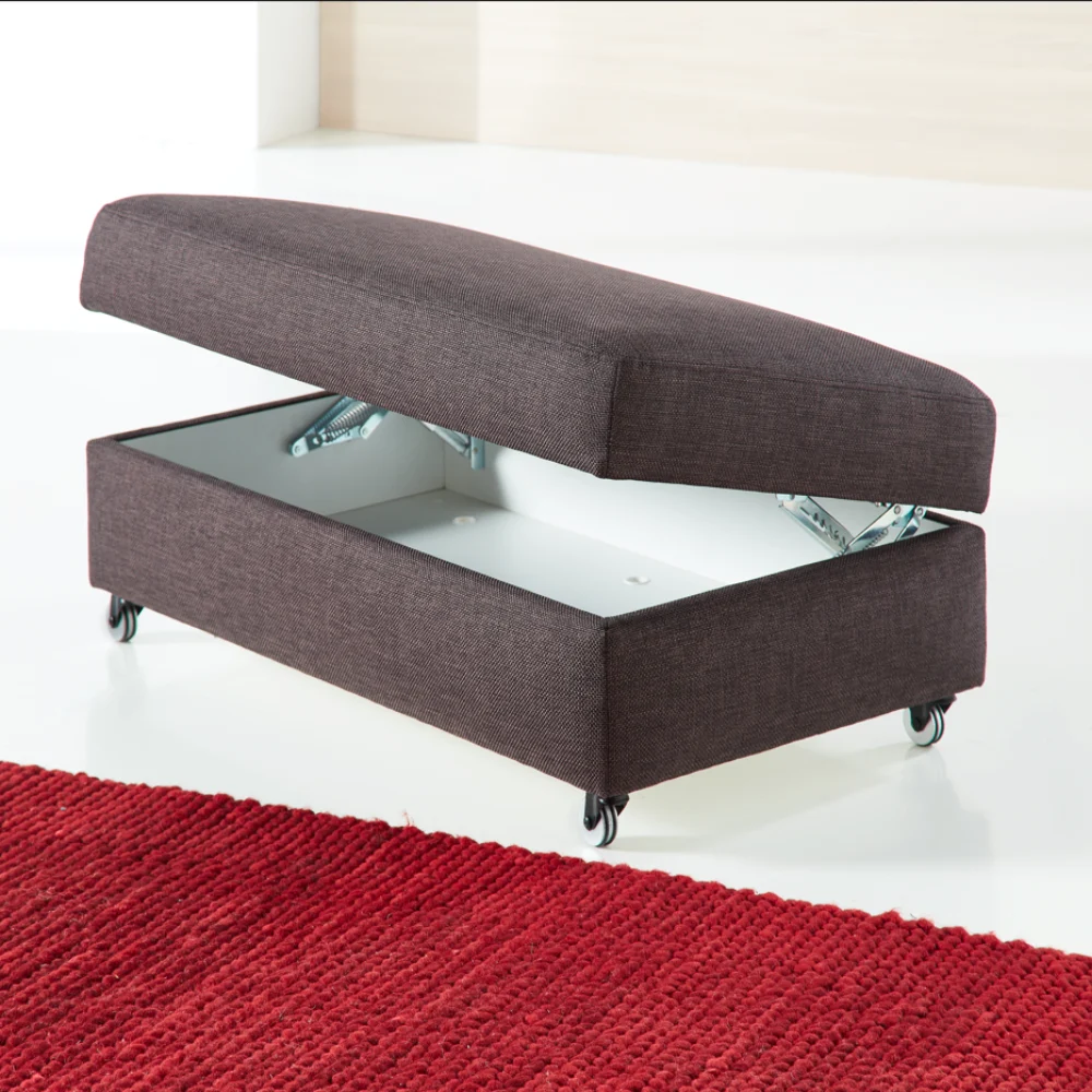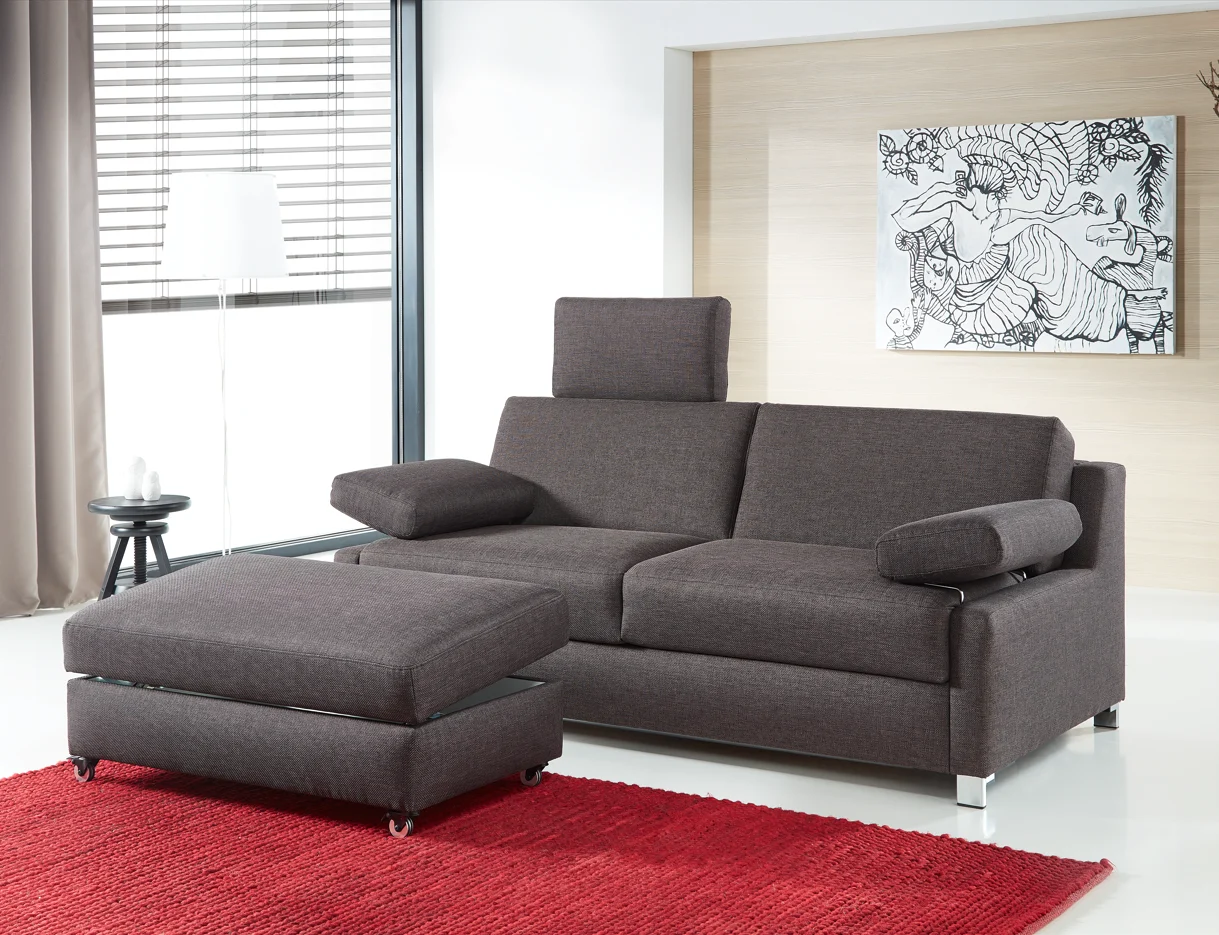 Slaapbank Fiona is beschikbaar in veel verschillende stoffen, waardoor u, bijvoorbeeld door de stofkeuze, de stijl van uw bank eenvoudig verandert naar een stijl die past in uw woning. Eén arm- of hoofdsteun is er vanaf € 134. Ook is het mogelijk om een bijpassende hocker bij te bestellen. Dan kunt u lekker met de benen languit! En extra handig: er zit ook een kleine opbergruimte in de hocker.