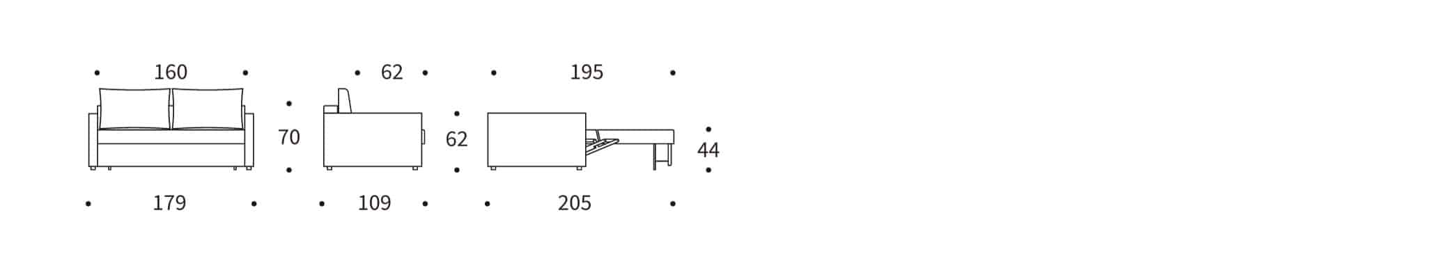Een duidelijk beeld van de uitklap-beweging van de slaapbank Neah 160 met slim armen
