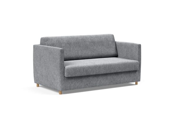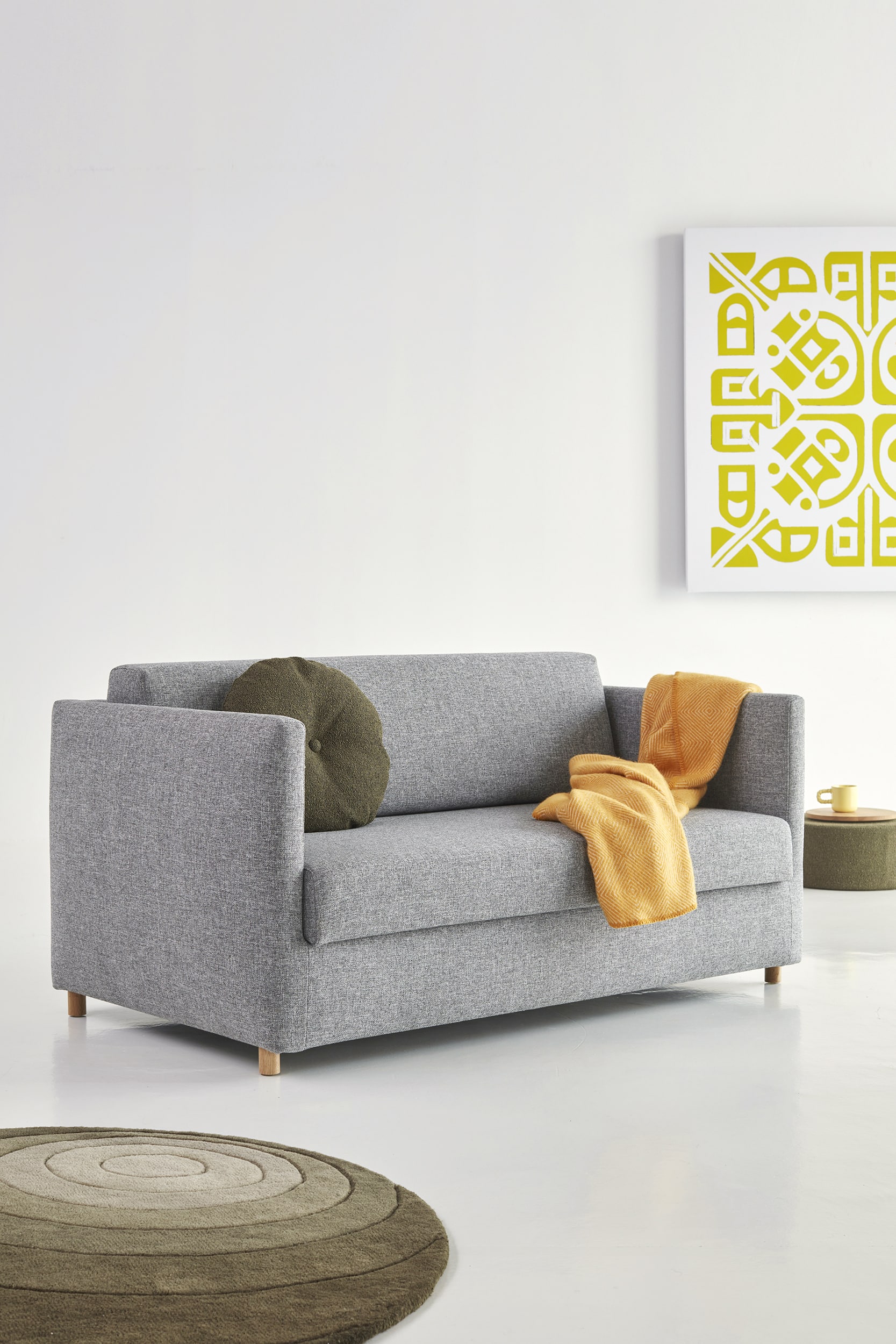 Ontdek de veelzijdige Olan slaapbank. Met een compact ontwerp biedt deze gestoffeerde bank comfortabele zitplaatsen voor twee personen dankzij de No-zag verenmatras die gelijkmatig en ondersteunend zit- en slaapcomfort levert.