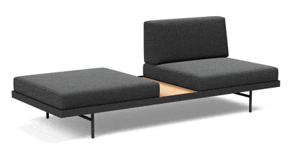 Er ontstaat, door alle kussens neer te leggen, een bed met de afmetingen 85×195 cm bestaande uit 3 bed/kussendelen. Het bed is geschikt als incidentele extra slaapplek.