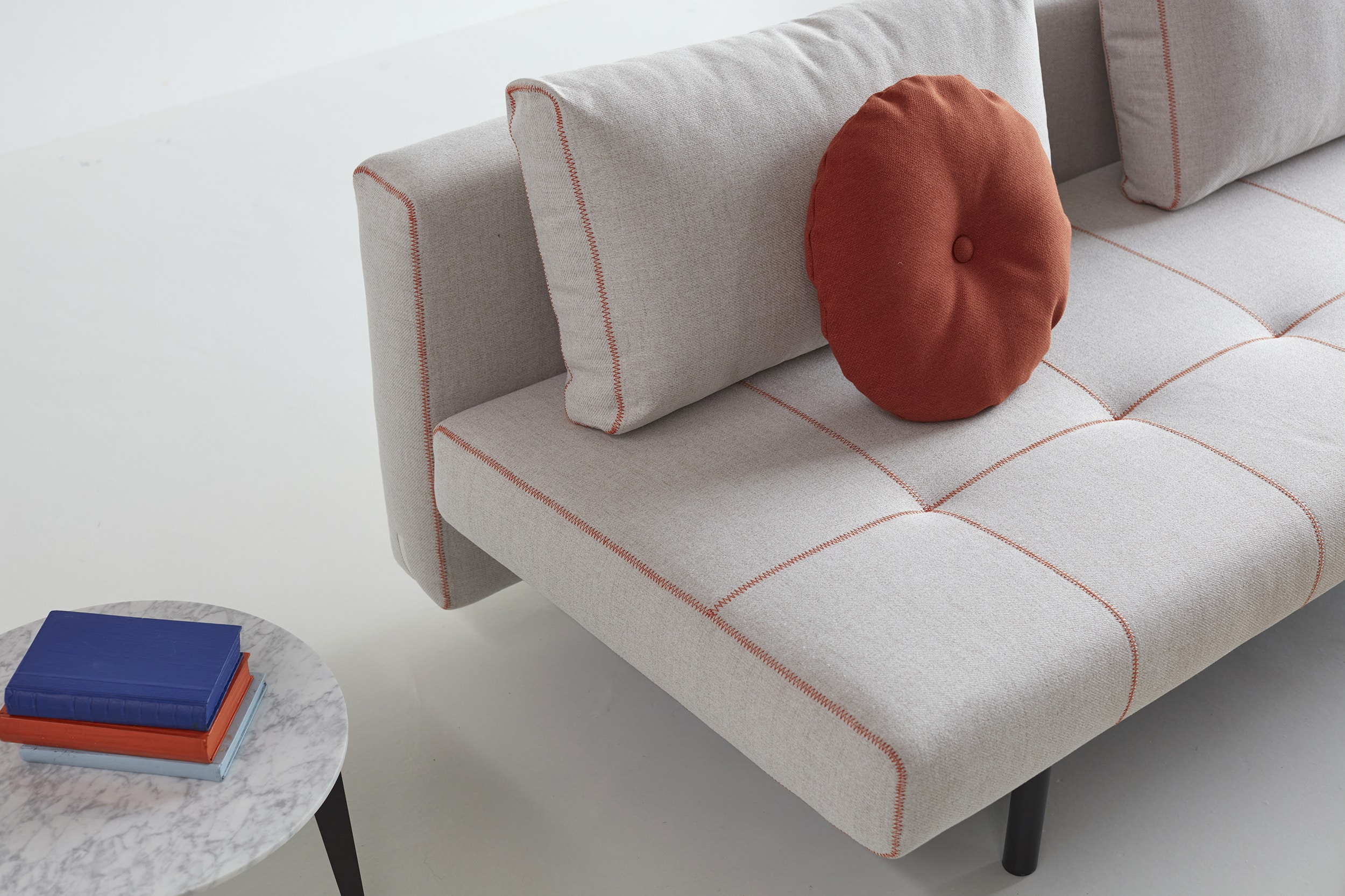 De opvallende zigzagstiksels op de naadpatronen voegen een subtiel detail toe dat het verschil maakt bij het design van deze slaapbank.