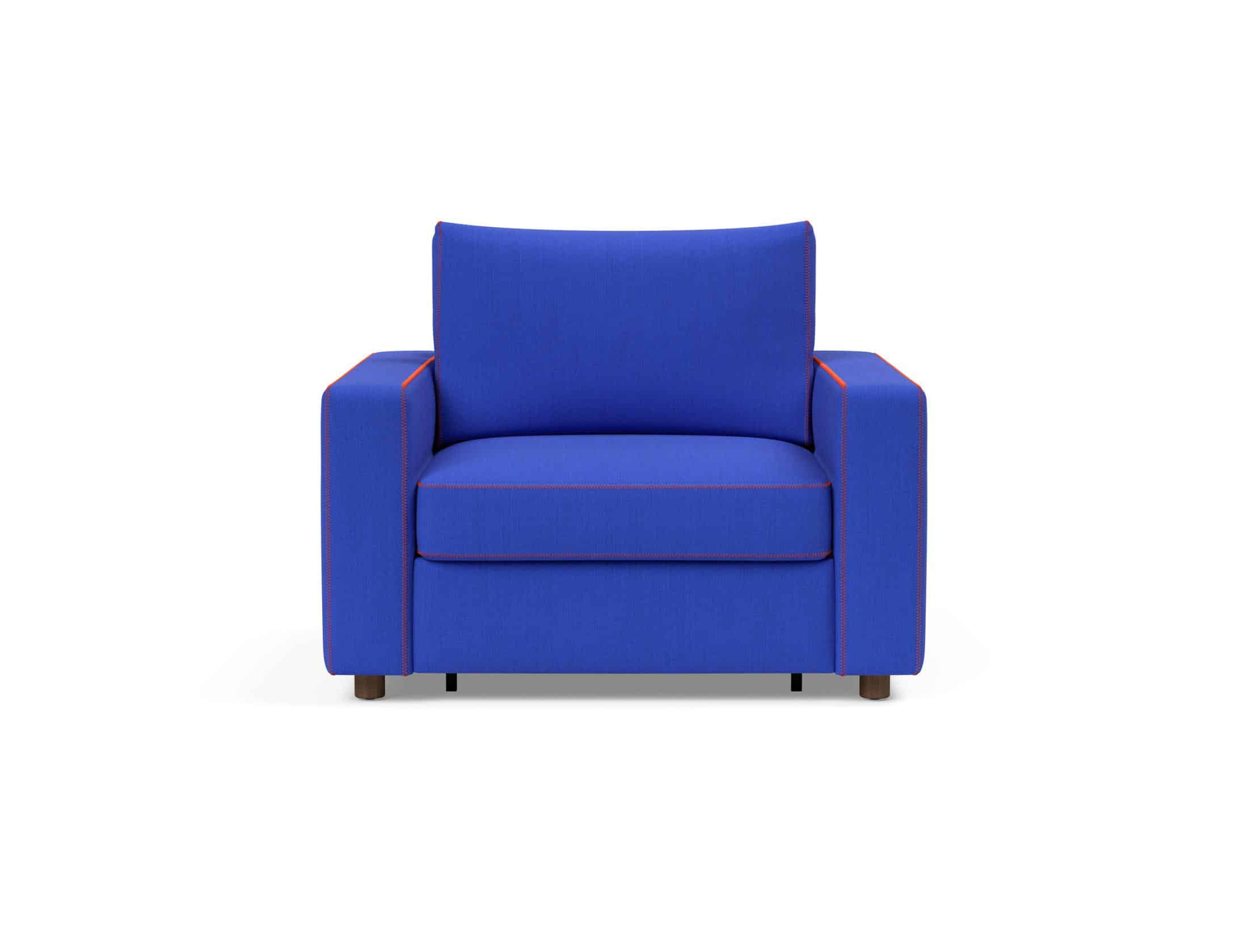 De Neah X Chair is meer dan alleen een statement piece; het is een innovatie in modern comfort. Gevuld met levendig ultramarijn stof en gedurfde oranje stiksels, brengt deze stoel een frisse, hedendaagse uitstraling in elke ruimte.